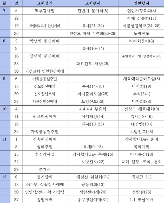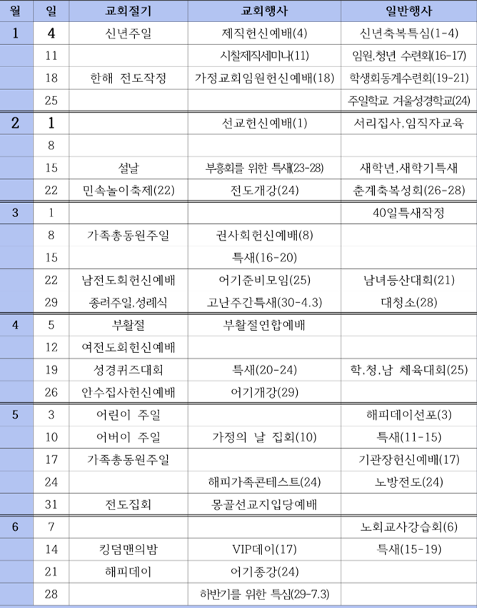 2026년 기흥제일교회 년간 행사 계획